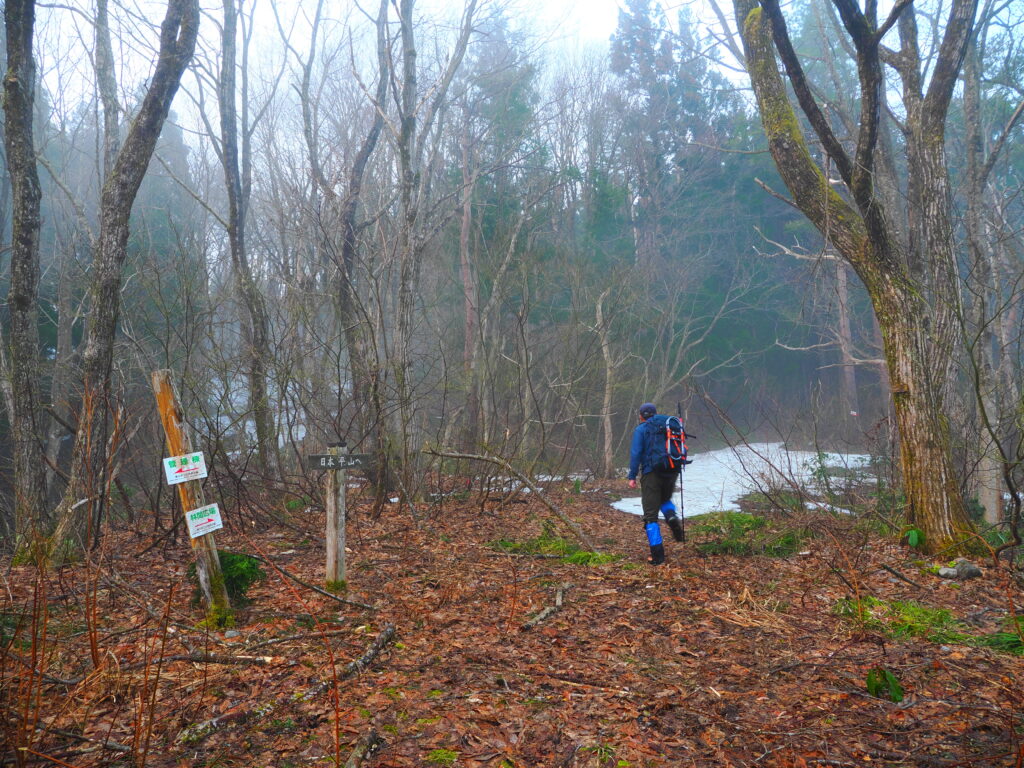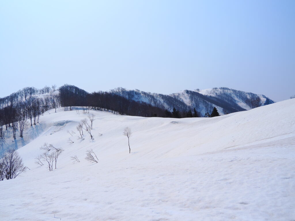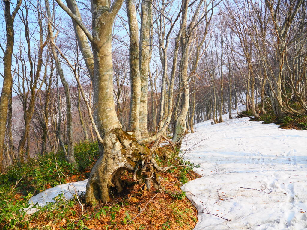 人分山を越え、のんびり進む。徐々に植生がミズナラからブナになる。大池のあたりは地形が複雑だ。ウロコ板が有効だろうか。