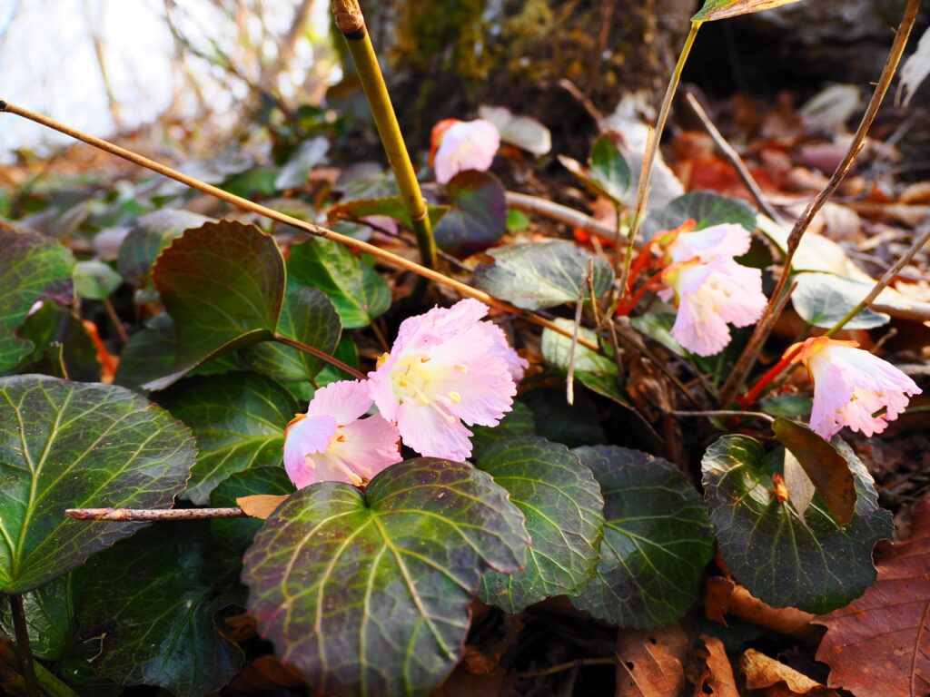 登山口にほぼ雪は無い。植林帯を歩く。少しばかり行くと、足下にカタクリとキクザキイチゲが寝ぼけている。周りの植生が広葉樹林に変わると、少しずつ残雪が出始める。イワウチワは元気に目覚めているようだ。
