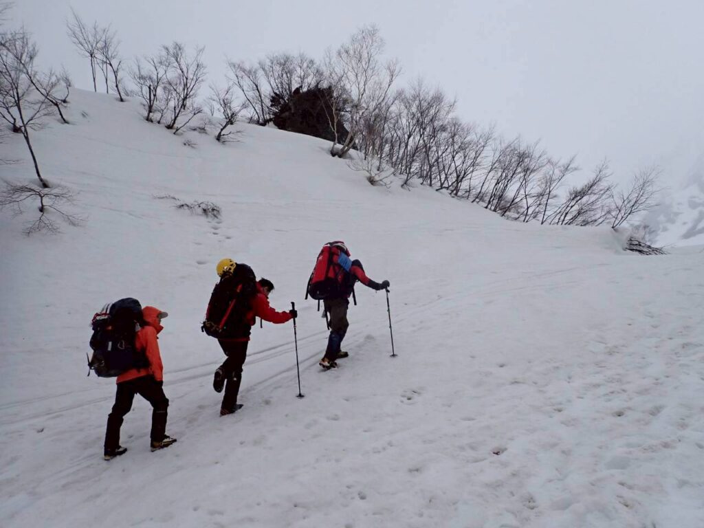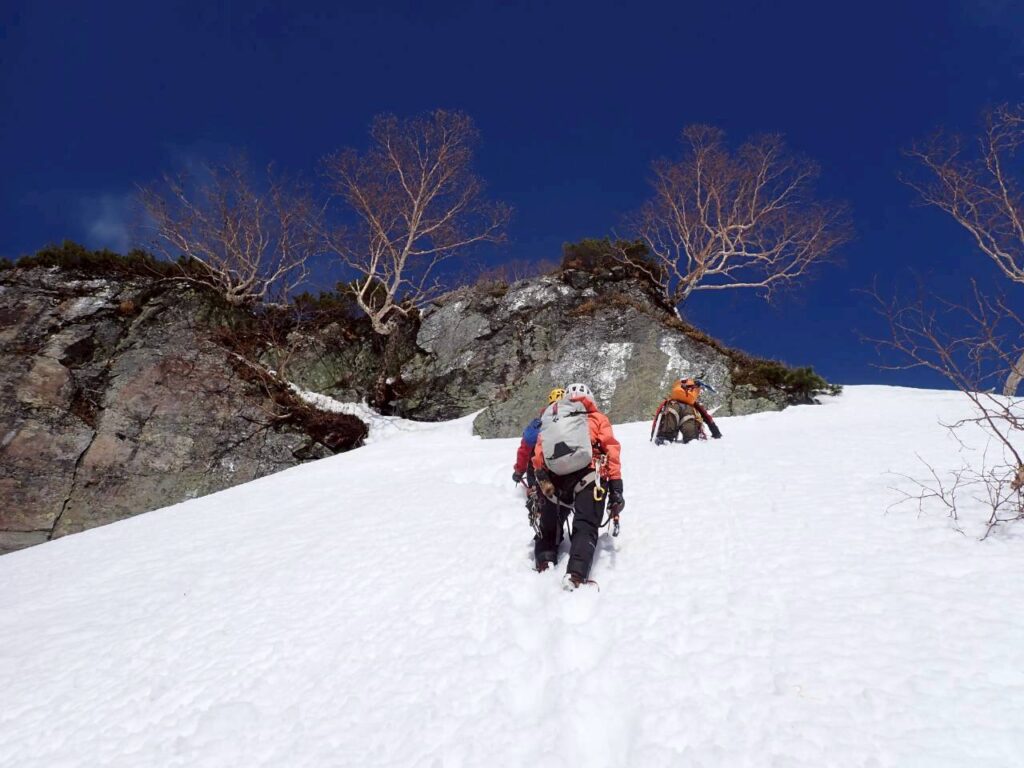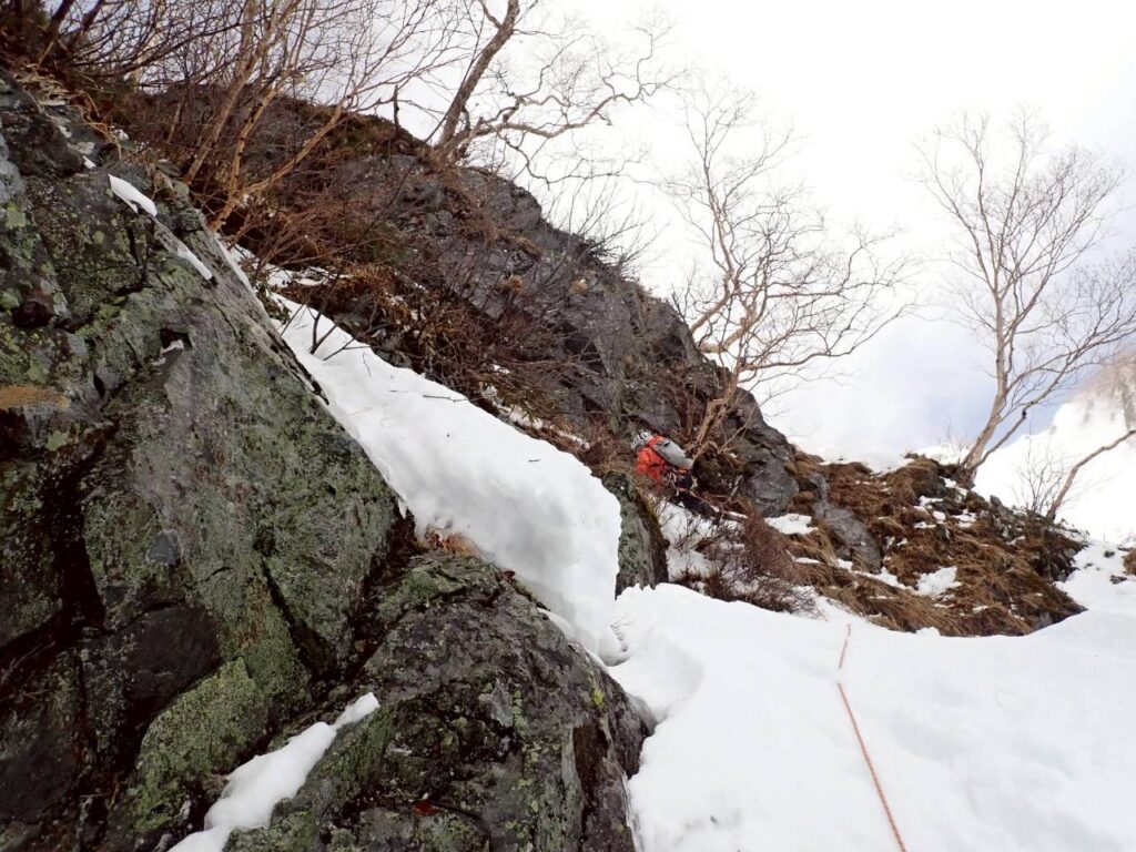 簡単な雪壁。踏み抜いた際に岩に脛を強打してめちゃくちゃ痛い。このせいであんまり記憶が無い。