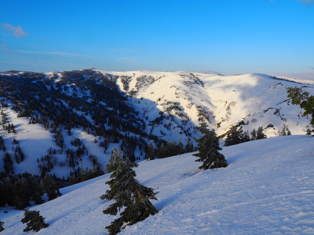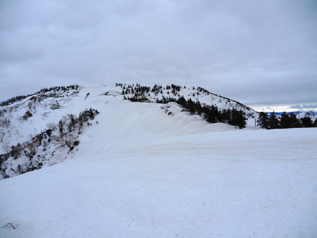 大杉岳からブナ林をテクテク下って御池に至る。一応、これで主脈縦走自体は完走した。小さくガッツポーズをする。御池はほぼ除雪されていた。