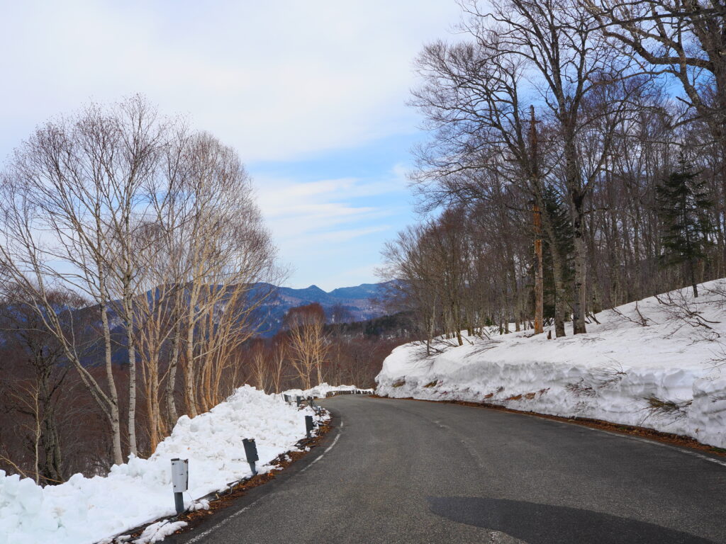 白沢集落のカラーコーンをこっそり突破(すんません)し、除雪終了地点から8時前にスタート。いわなの里の500m手前程まで除雪されていた。