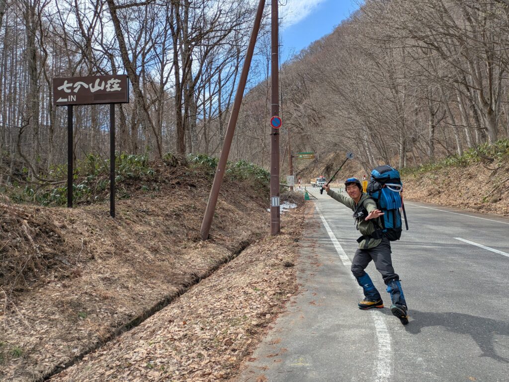 パッキングをして、再び重荷を背負う。といっても、もうあんまり重くない。急に旅の終わりを思い知り、少し寂しくなった。でも、お腹は空いたし、とにかく風呂に入りたい。林道をショートカットしながらテクテク歩いて七入に出た。先に下りていたゴリラがコーラを買ってきてくれた。今日もコーラが美味い。