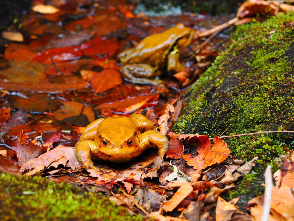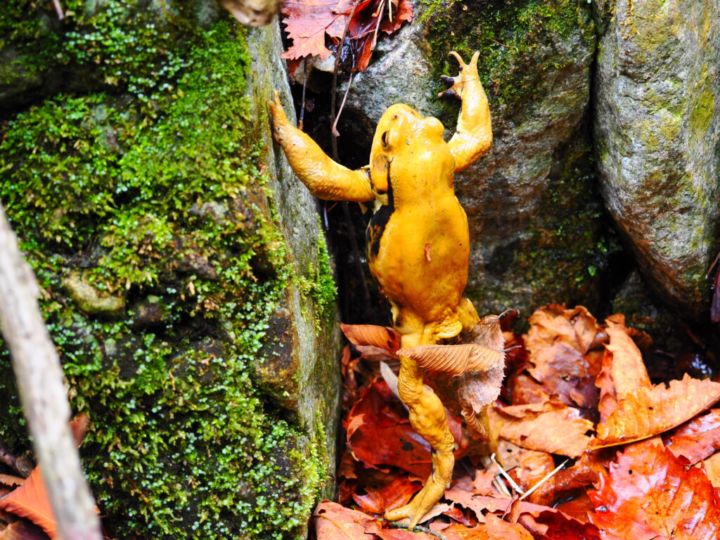 途中、ゲコゲコ声が聞こえるので、何やねん、と思って振り返ったら4匹くらいガマガエルがいてビックリした。卵があったので、産卵中なのだろう。うち1匹はなぜかルンゼ状をクライミングしていたが、多分こいつよりは俺の方がクライミング上手いな、と思ってちょっと安心した。