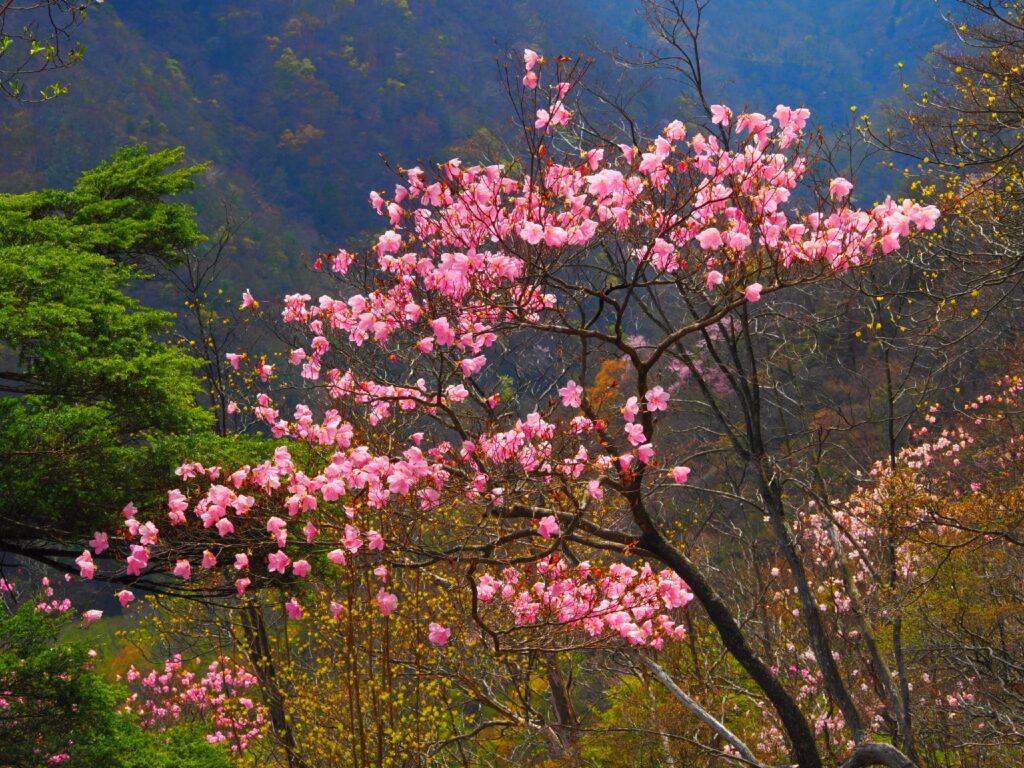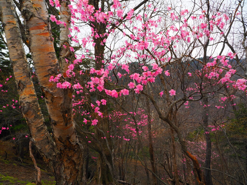目線を下げて鹿のウンコに舌打ちし、目線を上げてアカヤシオに心を浄化してもらう。この忙しい目線の上げ下げの繰り返しで下山した。